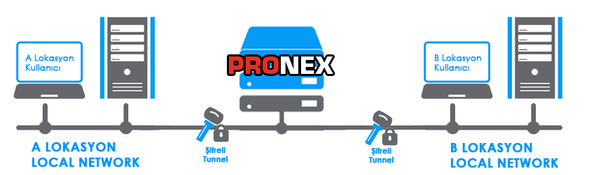 ProNex sanal özel ağ servisi (VPN) uçtan uça veya bir ağdan başka bir ağa güvenli bağlantılar yaratmanızı sağlar. Bu işlevi başka bir uygulamada görülmeyecek kolaylıkla sunar. Bu işlevleri IPSec, SSL gibi teknolojileri güçlü şifreleme seçenekleriyle sunarak gerçekleştirir.
